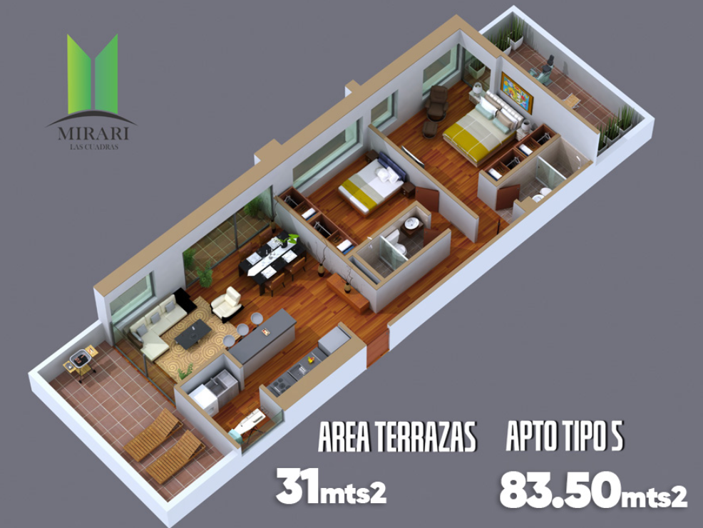 El EDIFICIO MIRARI, es un proyecto de 28 apartamentos en el barrio las Cuadras. Con un avance de obra actual del 60%. Para entrega aprox. en julio del 2026.